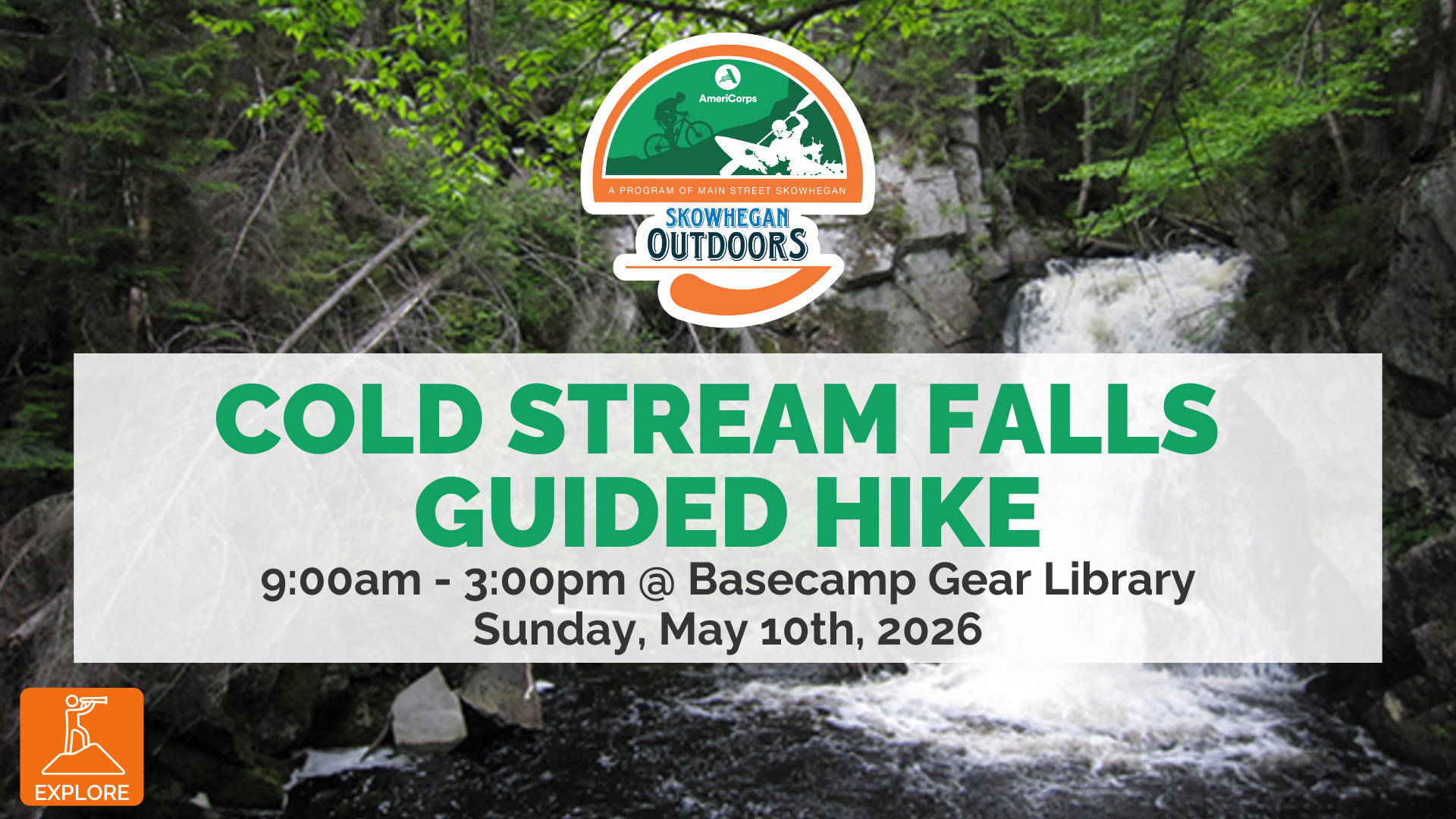 Join us for a guided hike to Cold Stream Falls with transportation provided from Basecamp Gear Library.