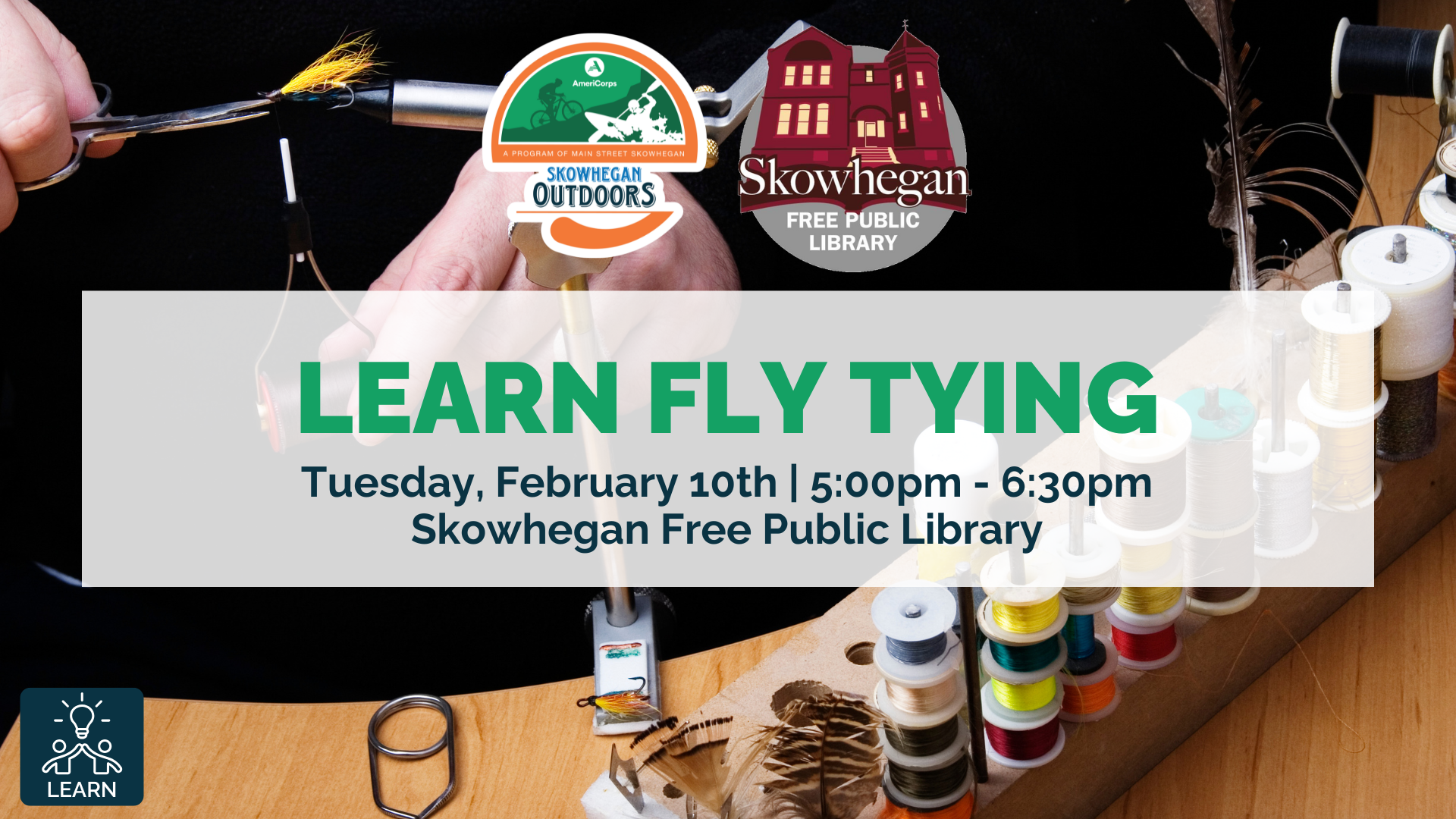 Register here: https://www.giveffect.com/campaigns/43083-learn-fly-tying-with-skowhegan-free-public-library/join